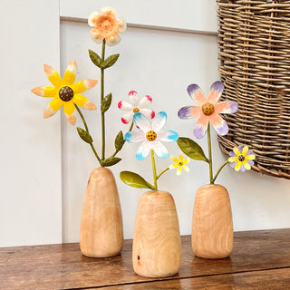 Add a touch of cottage-core charm to your home with our Whimsical Metal Painted Flowers! This delightful set features three handcrafted wood bases, each holding a beautifully painted metal flower. The combination of natural wood and delicate floral designs brings warmth, whimsy, and a timeless rustic feel to any space. Whether styled together or placed individually, these everlasting blooms offer a touch of nature-inspired beauty—no watering required!