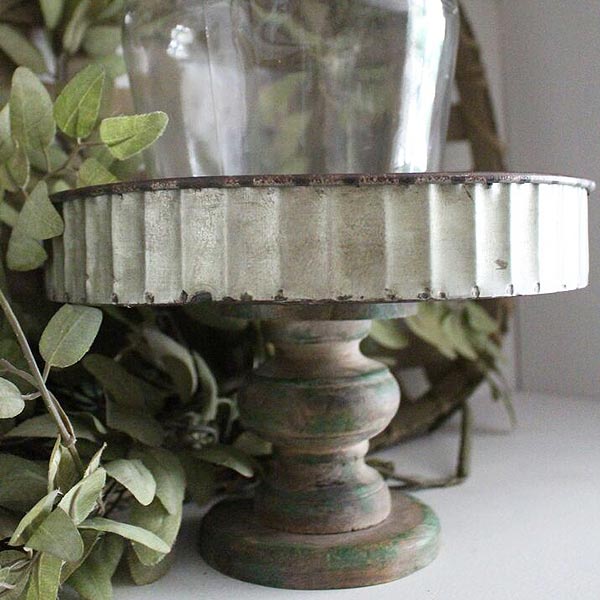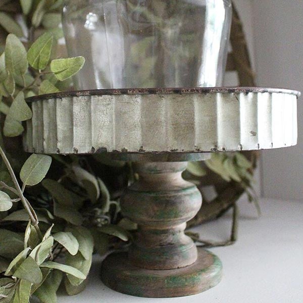 Good morning! Good morning! Are you ready to fall in LOVE?! Because we certainly did when we laid eyes on our newest steal!! If you ADORE pieces with distressed features as much as we do than our Tin Top Pedestal Tray is for you!!! The galvanized top and distressed wood stand on this beauty! SIGH!!! Pieces like this one are certainly a staple piece in farmhouse décor and SUPER functional!!!