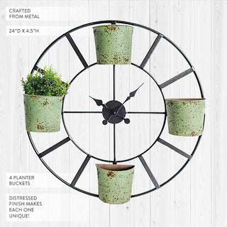 With its creative, farmhouse-inspired design, this Distressed Green Metal Planter Clock brings cool character to any room, making it a perfect choice for those who love a blend of nature and functionality in their decor.