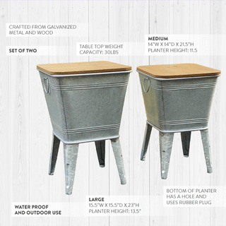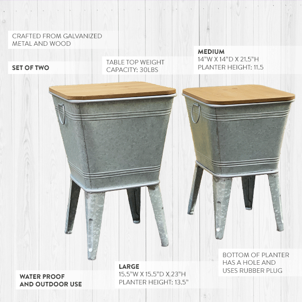 Medium: 14"W x 14"D x 21.5"H Planter height: 11.5" - Packed: One Set per package (you will receive 2 Planter Table)