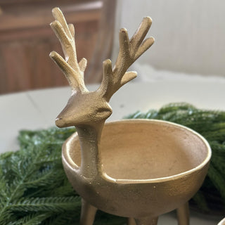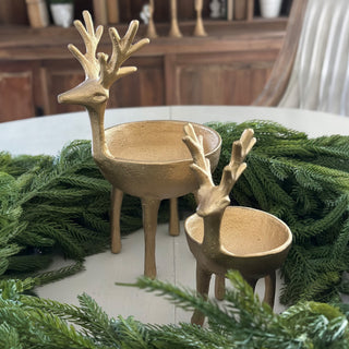 Don't hesitate, quantities are limited! Add a touch of whimsical elegance to your holiday gatherings with the Metal Reindeer Figurine Bowl, Set of 2. These charming bowls are perfect for serving small snacks and treats, bringing festive joy to your table setting. Each bowl features a delightful reindeer design, making them both functional and decorative. With a blend of modern farmhouse charm, they seamlessly fit into any rustic or contemporary holiday decor. It’s how royalty snacks at a budget price – they don’t need to know you paid so little!