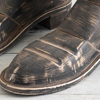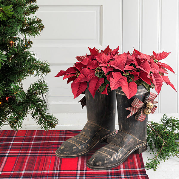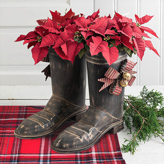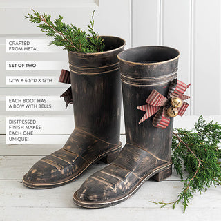 Each boot features a lightly weathered look that blends seamlessly with farmhouse decor, vintage decor, or classic holiday styles, making it the perfect addition to any room.