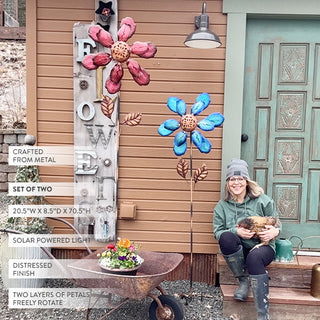 Transform your garden into a whimsical wonderland with our head-turning Metal Solar Flower Yard Stakes! These aren't your neighbors boring, flimsy garden decorations—they're 70 inches of pure outdoor magic that'll have your guests doing double-takes!