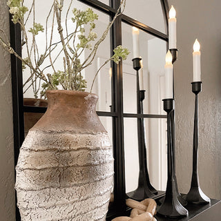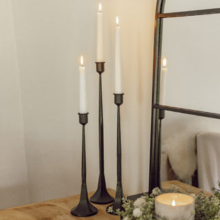 Illuminate your world with the Metal Taper Candle Holders, Set of 3, and let the warm embrace of candlelight sweep you away into a realm of pure enchantment.