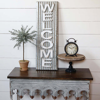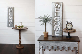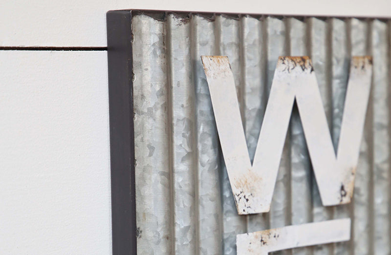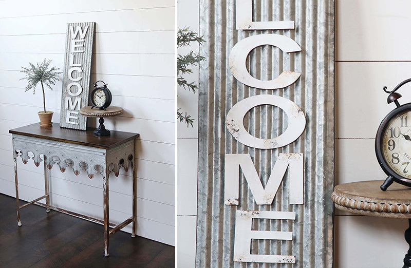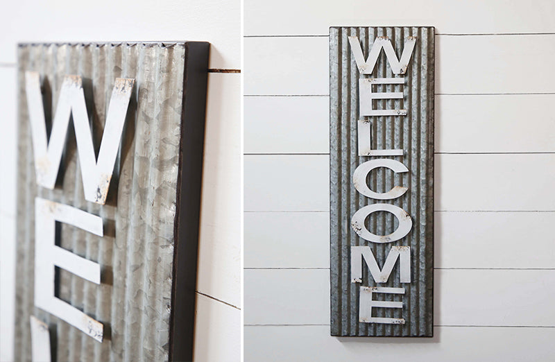Love at first sight!! That is exactly how we felt when we laid eyes on this AHH-mazing metal welcome sign! The aged metal mixed with that perfectly distressed white color is sure to add that welcoming flare to any home!