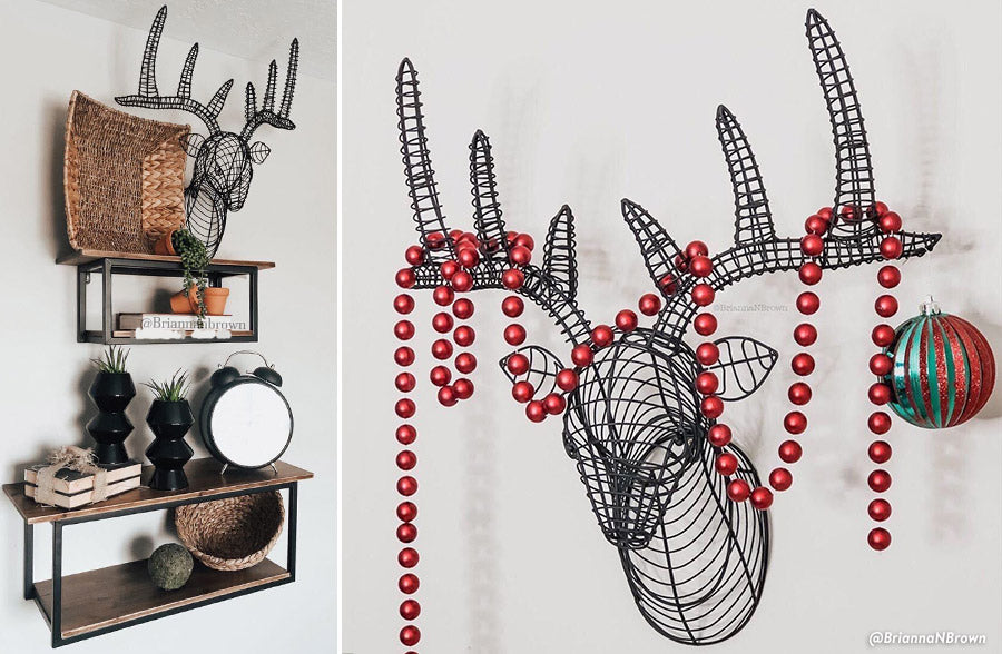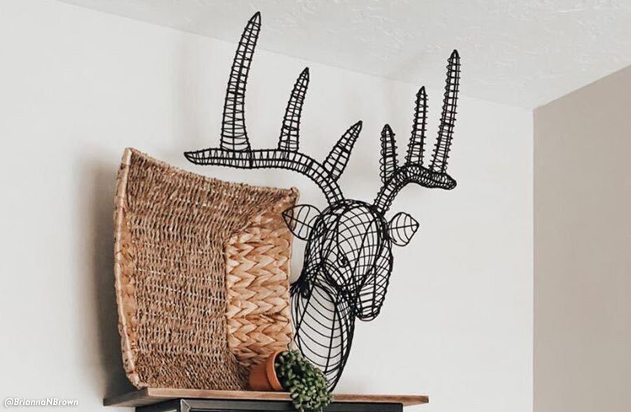 This wire framed reindeer will look AMAZING above your mantel... hang lights and ornaments from his antlers! Dress him up with garland! This guy will be your new favorite holiday piece! He is dripping in rustic charm and looks great styled alone... but what about adding a Santa hat to his antler? WOW, the fun possibilities are endless! We haven't named him yet, so we will let you and the kiddos get creative! ;)