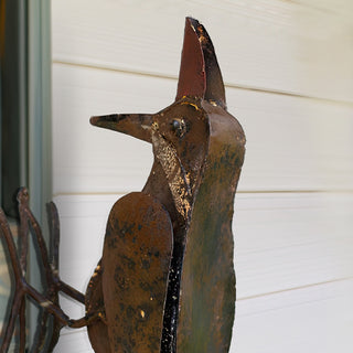 Introducing our Metal Rustic Woodpecker Sculpture – a perfect accent for your porch, garden, or patio. Easily mount it to your porch column or cabin to add a charming touch to your outdoor space. Ideal for bird lovers, this piece also makes a thoughtful gift. Note: While suitable for outdoor use, consider applying a clear coat to extend the product's lifespan and prevent deterioration if exposed to the elements.