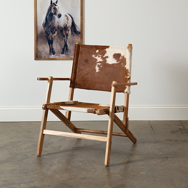Well, partner, if you’re lookin’ for a chair that’s as sturdy as it is stylish, saddle up and take a gander at this Farmhouse Wood Folding Chair. Crafted from solid mango wood with a natural finish that’s got all the rustic charm of the open range, this here chair’s got a seat made of genuine cowhide—now that’s a seat fit for a cowboy! Whether you’re ropin’ cattle or just sittin’ a spell, this chair’s got you covered.
