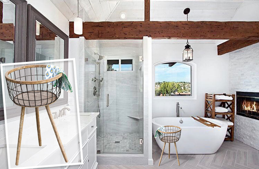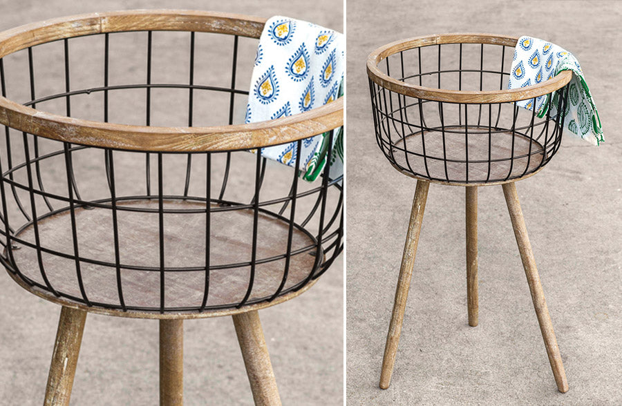 Take your greenery or storage needs to new heights with our lovely Standing Tripod Storage Basket. With its wooden tripod legs and a contrasting wire basket, this stand will bring a unique design element to your space.