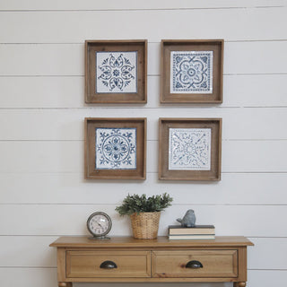 These four pieces of wall art really grab your attention! The blue and white details surrounded by natural wood makes them a farmhouse dream... Sigh... They are so so so beautiful!! Because there are four of these beauties in one set you can get SUPER creative with how you display them. Maybe keep all of them together split them up in different rooms or create pairs! Seriously the possibilities are ENDLESS!! We ADORE them so much our hearts melt every time we see them!