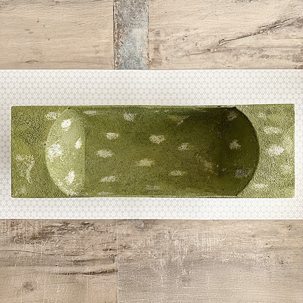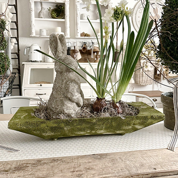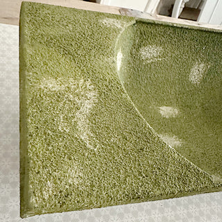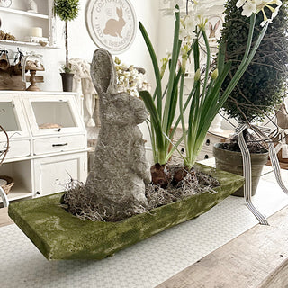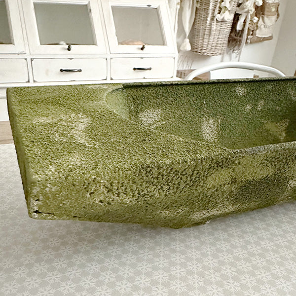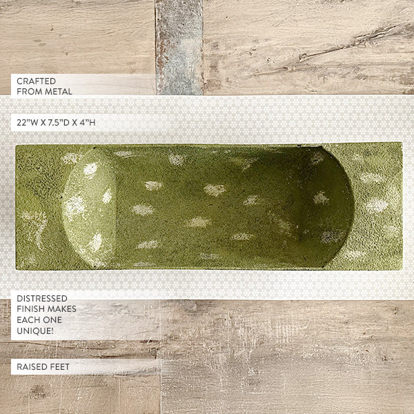 Once a baker’s essential, now a statement piece—this Aged Mossy Dough Bowl with Raised Feet brings a touch of old-world charm to your home. With its timeworn patina and mossy green finish, it looks like a vintage treasure discovered at a local market. Whether styled on a dining table, entryway console, or mantel, this unique piece adds depth and character to modern farmhouse decor.