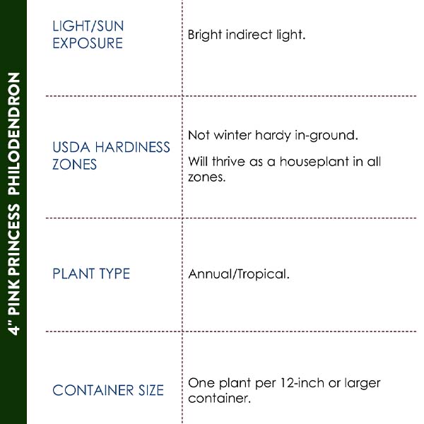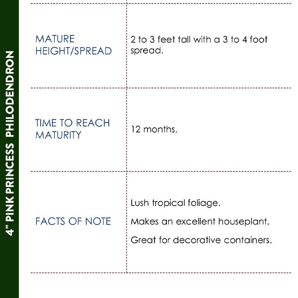 Pink Rose Philodendron: Elevate your mom's living space with the delicate charm of our Pink Rose Philodendron. With its heart-shaped leaves and soft pink hues, this plant embodies grace and sophistication. Perfect for adding a pop of color to any corner, it symbolizes love and appreciation, making it a heartfelt gift for Mother's Day.