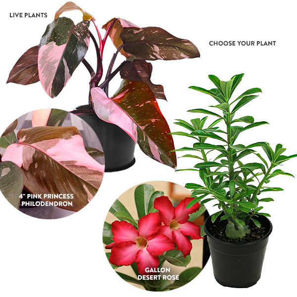 Delight your mom with the timeless elegance of pink blooms this Mother's Day! Our Mother's Day Pink Plants collection offers two exquisite choices: the Desert Rose and the Pink Rose Philodendron. Each plant exudes grace and charm, making it a splendid addition to any indoor garden or living space.