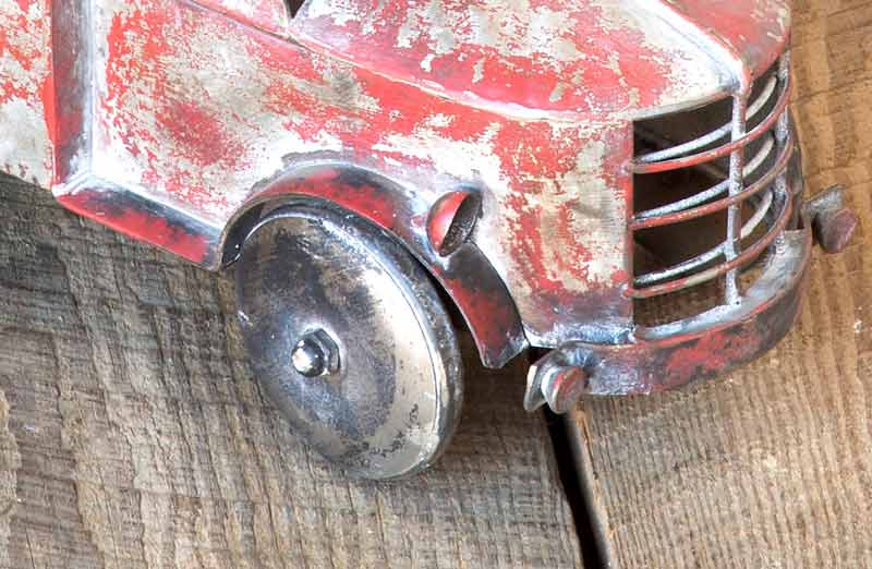 -Highlights: Beautifully crafted from metal with a distressed red paint finish.