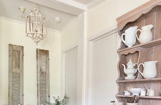 We are SWOONING over this GORGEOUS wood and metal chandelier! It is dripping with SO much farmhouse charm and character that we can’t stop looking at it! We can’t stop thinking about all the décor possibilities with this beauty!