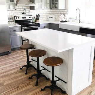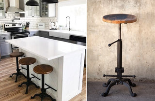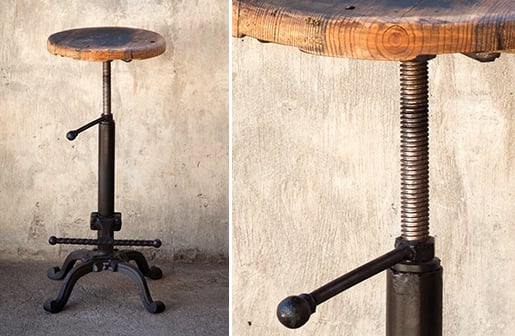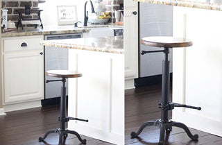 Welcome home industrial farmhouse lovers! Based on the same mechanisms of drafters and Technicians chairs in the early 1900's this Vintage Bar Stool with Reclaimed Wooden Seat's adjustable mechanism allows a comfortable height for anyone! Like really a nice range! From 15" to 30"!!!!