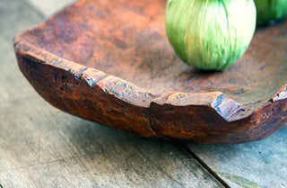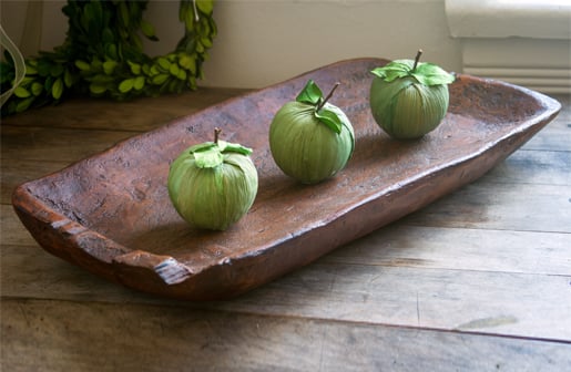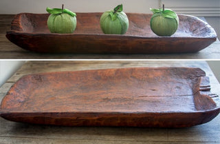 Our dough bowl today is a beautiful reproduction of these early 19th century dough bowls that were so essential in everyday life. This very unique piece lends itself to a multitude of uses and makes a great conversation-starter.
