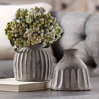 Offering a handmade look and timeless charm today’s steal works with rustic modern and even classic-style homes. These gorgeous ceramic vases have a unique textured look neutral gray color and beautiful shape. The distressed finish gives this duo of vertically ribbed vases an aged appearance like each one of them was carved by hand.
