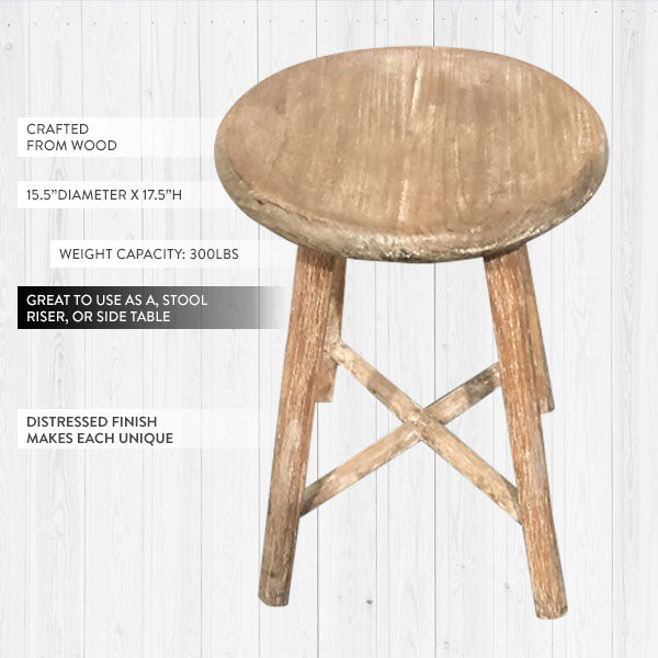 This Natural Weathered Wood Farmhouse Milking Stool has a natural wooden finish and is distressed to perfection. Add this to your vignettes for height or as a stepping stool in the kitchen for soooo much added character and charm.