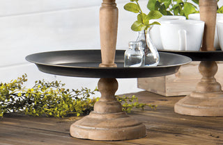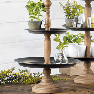 -Dimensions: 15" Diameter x 22" High Top Tray: 10" Diameter Bottom Tray: 15" Diameter