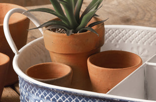 The beautiful color palette and floral print make it so simply beautiful as if you picked it up on a Summer day from the nearby flea market. This sturdy metal caddy is divided into three sections and can hold most anything! Bring a little farmhouse touch to your home and organize your cutlery, pens, brushes, and tools. Or use this metal caddy as a centerpiece and display some of your seasonal harvest or fruits and vegetables. It large size allows you to get creative and we can't wait to see what you all come up with :)