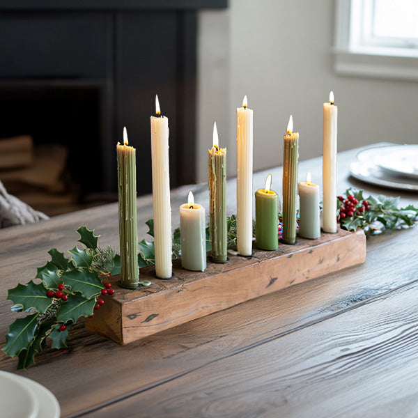 Nine tapered slots: Holds up to nine taper candles to create a soft, atmospheric glow.