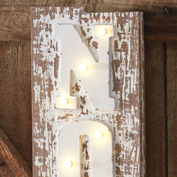Hang this beautiful LIGHT UP Noel Farmhouse Marquee Sign in your entryway to greet your guests and put a smile on their faces! We can see this hanging above your couch or styled above your mantel along with your other holiday décor. Hang this on an empty wall in your dining room, near your Christmas tree or in the bedroom even! This piece will WOW everyone!