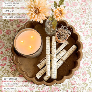 Our Scalloped Round Oak Wood Tray gives you the best of both worlds—a beautifully crafted accent that won’t break the bank. With its classic scalloped edges and durable oak construction, this tray blends function and elegance effortlessly, making it a must-have for any space.