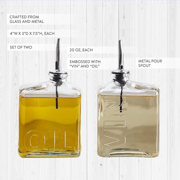 WELCOME your newest favorite kitchen accessory! Not only will this Oil and Vin Bottle Set look super cute displayed on your kitchen counter... but you will LOVE putting them to use too!
