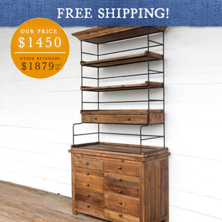 This rack offers storage and plenty of shelves to display your favorite mementos. This modern yet classic farmhouse piece is a staple for every home! There is so much character and uniqueness radiating from this beauty. Use it to store/ display china, plates, vases, picture frames, books!! What about decorating this piece with multiple plants and flowers?! TO DIE FOR!! What better way to greet guests in your hallway or fill that unused space in the living room than with this stunning bakers rack?! This piece provides so much vertical storage and will not take up a ton of floor space. You really cannot go wrong!!