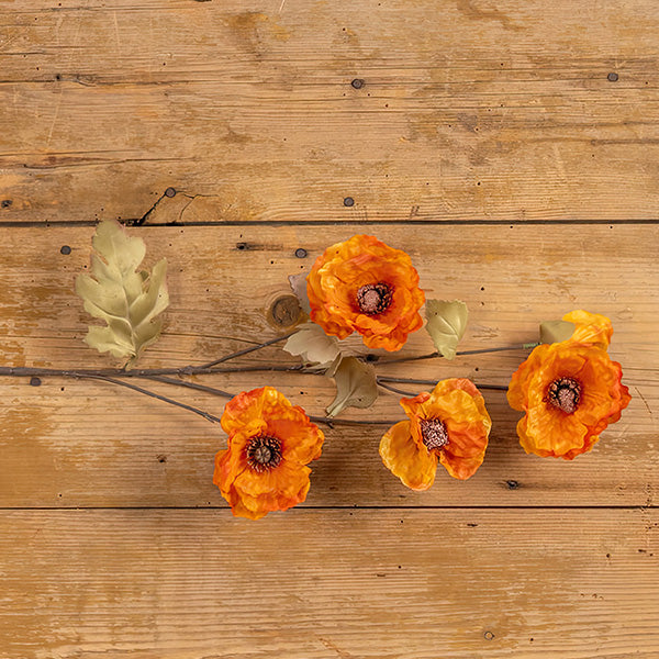 Introducing the Orange Poppy Spray, a set of 4 stems that bring a vibrant pop of color and a touch of whimsy to your decor. Perfect for creating eye-catching arrangements, these striking orange blooms add a lively and cheerful ambiance to any space.