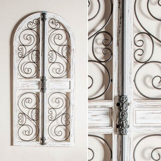 Can you say LOVE at first sight?!We were in awe when we laid eyes on this gem!!! SERIOUSLY… Our jaws dropped! The distressed white wood finish and EXQUISITE detailing of our Wood and Iron Window Wall Panel make it the most PERFECT statement piece!!! Not to mention it’s HUGE!!! We’re talking52” huge!!!
