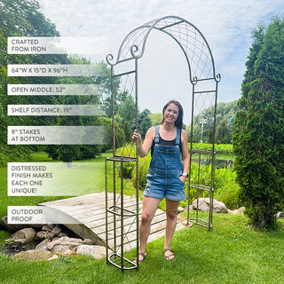 Picture this: You step into your backyard and wow – suddenly it feels like you've wandered into a secret garden! That's the magic our 8 Foot Tall Metal Outdoor Garden Arch Trellis with 6 Plant Shelves brings to any outdoor space. With its swooping curves and perfectly imperfect distressed finish, this beauty doesn't just sit in your garden – it transforms it.