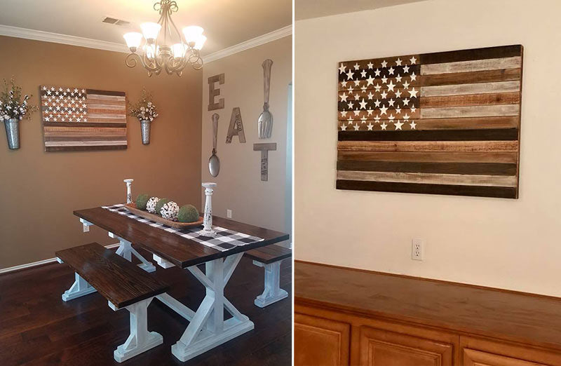 Whether it's The Fourth of July Memorial Day or Veterans Day we are ALL proud to be Americans! So let's show that American Pride all year round with our beautiful American Flag Wooden Art!