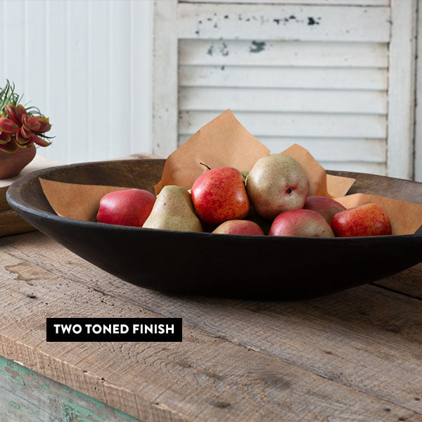 For generations, families in Europe used to use similar dough bowls to mix and prepare the dough for their daily bread. Our dough bowl today is a beautiful reproduction of these early 19th-century dough bowls that were so essential in everyday life. This very unique piece lends itself to a multitude of uses and makes a great conversation-starter... and not to mention it's FULL of farmhouse charm!