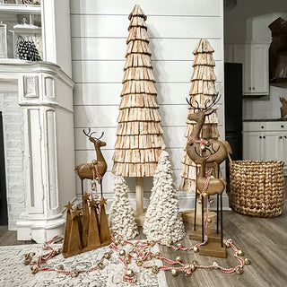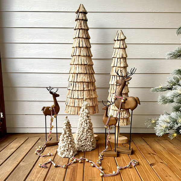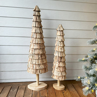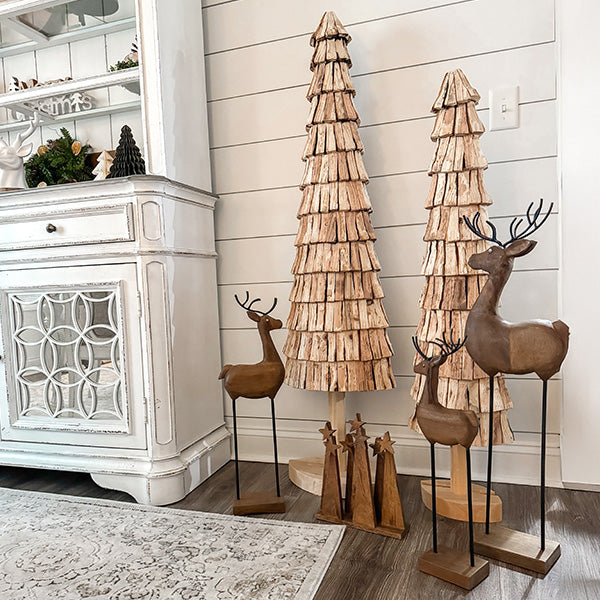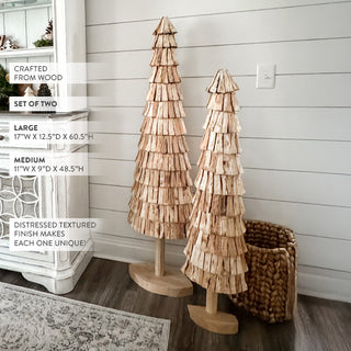 Add rustic elegance to your holiday decor with our Oversized Fir Wood Petal Christmas Trees, Set of Two. These striking trees, standing at 48 inches and 60 inches tall, bring a bold yet natural statement to any room. Their distressed texture adds a unique charm, making each piece one-of-a-kind.