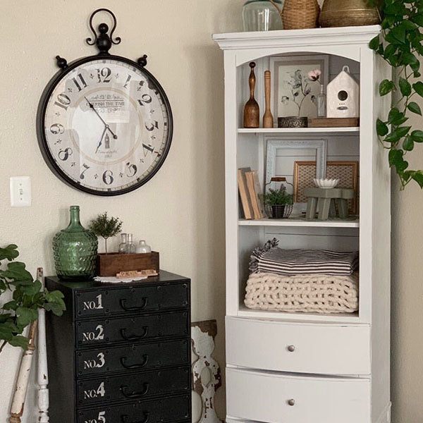 This vintage-inspired pocket watch wall clock is beyond pretty!! Its distressed numbers and lettering give off SO much texture and a unique style! This pocket watch wall clock will WOW everyone styled in your dining room, living room or kitchen! We LOVE the idea of this clock hanging next to your pantry door or in your entryway! Hang it in your office and you’ll always know the time! This pocket watch wall clock is vintage, rustic, and chic!