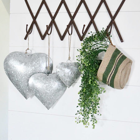 These beautiful metal hearts can be styled together or separately, it's up to you! Hang these on an empty wall to add some sweet décor and charm! Hang these from hooks in your dining room to add even more character to your space. Hang these above your pantry door, in your bathroom, or even style them on your front door to greet your guests! We LOVE the idea of these being used as part of a gallery wall in your living room! These are sure to grab anyone’s attention!