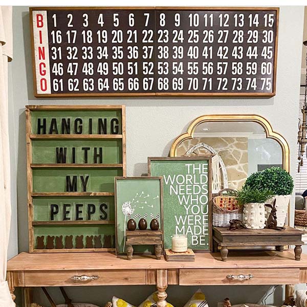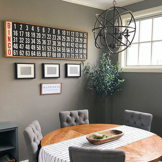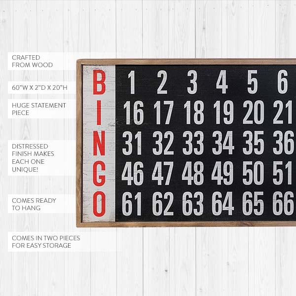This Oversized Wall Decor Bingo Board is just that! ... It's HUGE! At 5 feet long this piece will be THE statement maker where ever you decide to put it! Start conversations by placing this fun piece where ever you may need a little (or A LOT) of extra charm! What about on the wall next to your pool table?! Turn your space into a fun game-night inspired room! What about in the kiddo's play area or bedroom?! This is the perfect piece to incorporate your vintage farmhouse theme! Lean this Bingo board vertically against your wall in your living room and surround it with your other vintage treasures to create a unique display that will be sure to draw in the eye! ... Is your Hubby feeling a little left out? Well, we have the perfect solution! Add this fun piece to his man cave and VOILA! Instant farmhouse charm!