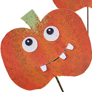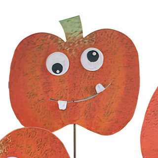 Introducing the Painted Metal Jack-O-Lantern Yard Stakes, a set of three vibrant and durable decorations perfect for bringing Halloween spirit to your outdoor space! Each stake features a uniquely painted Jack-O-Lantern face, adding a playful and colorful touch to your festive yard display.