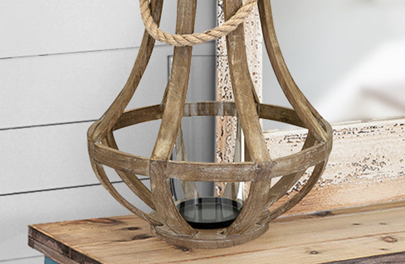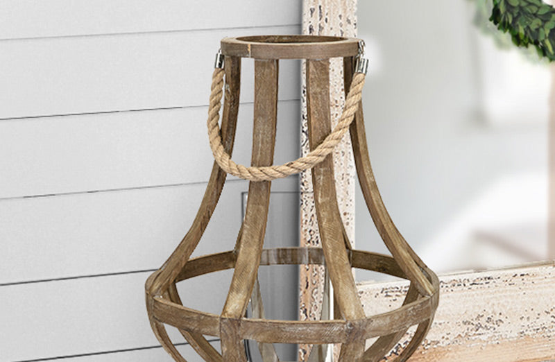This wooden lantern has a rustic finish to give your space that country farmhouse look. It comes with a rope for easy carrying or you can hang it in your dining room or maybe on a hanging loop in the living room to set the perfect ambiance.