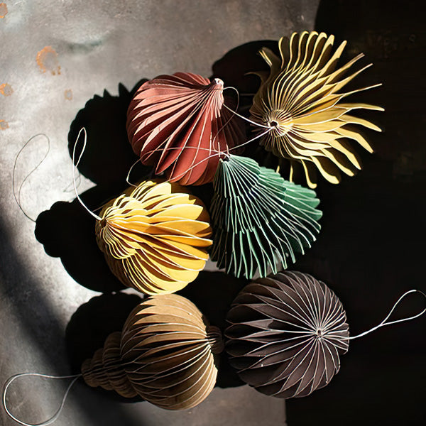 Effortlessly decorate your home this holiday season with our Paper Accordion Christmas Ornaments, Set of Six. These charming, intricately designed ornaments add a festive pop to your decor, whether hanging on the tree, adorning a mantel, or brightening up any room. With their beautiful, accordion-style folds, they bring a touch of whimsy and elegance to your holiday celebrations. And can you believe that price? It's an unbeatable deal for such high-quality Christmas decorations!