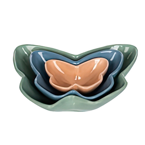 Introduce a touch of whimsy to your home with our enchanting trio of Pastel Butterfly Ceramic Bowls. Crafted in a harmonious palette of sage green, sky blue, and soft peach, these nesting beauties serve both form and function in perfect balance. The elegant butterfly silhouettes bring natural charm to any space, whether displayed together as a decorative accent or used separately for serving dips, holding jewelry, or organizing small treasures.