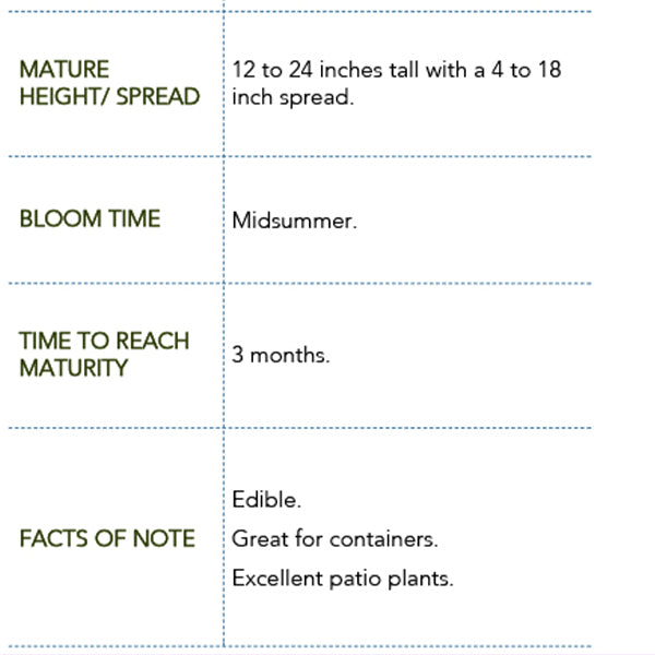 - Compact habit is perfect for planting in containers and placing on your patio, counter-top or windowsill