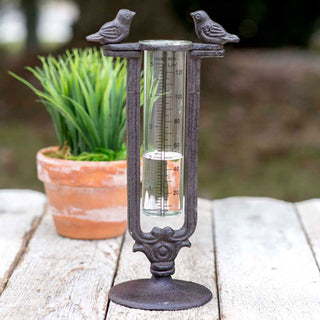 This Tabletop Rain Gauge will add such a sweet touch of whimsical charm to your outdoor space! This rain gauge is so ADORABLE with the two birds perched on top! It gives off a very vintage look!