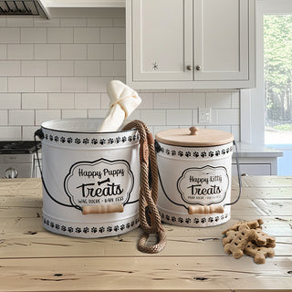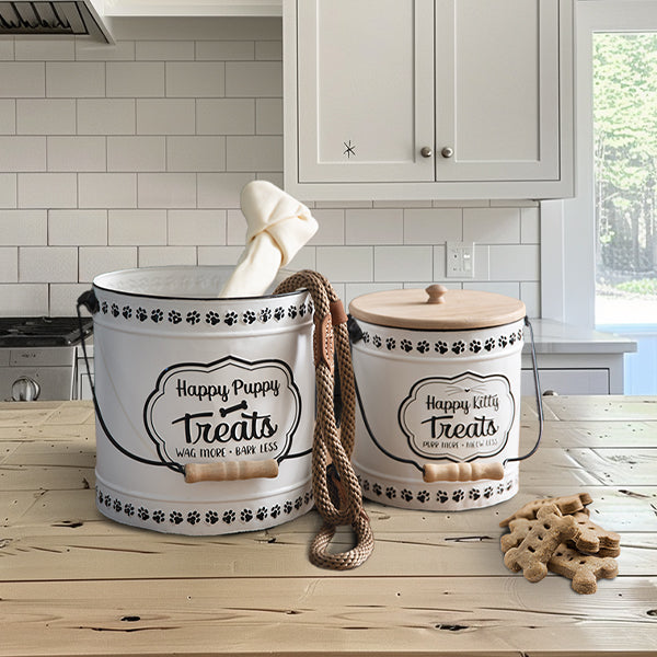 Keep your pet's treats stylishly stored in this Set of 2 Vintage Pet Treat Canisters, featuring charming retro designs. These durable canisters add a nostalgic touch to your kitchen while ensuring treats stay fresh and accessible.