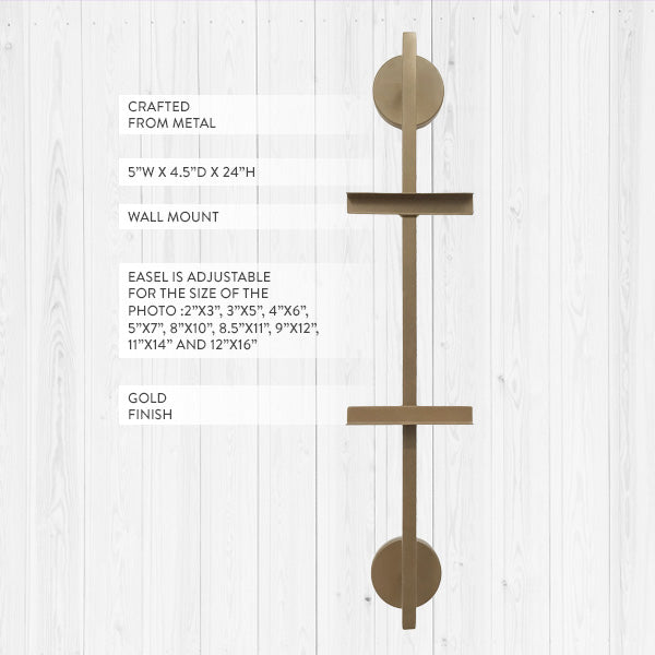 Gold Metal Adjustable Wall Mounted Picture Easel Art Display Frame Holder