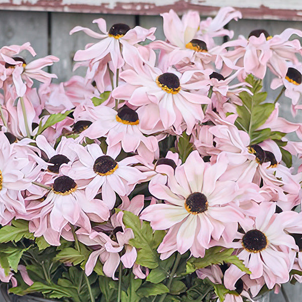 Introducing the Lifelike Pink Black-Eyed Susans, a set of 12 stems that bring a unique twist to a classic bloom with their vibrant, realistic appearance. Perfect for adding a cheerful pop of color to your arrangements, these pink blossoms offer a delightful blend of natural beauty and charm.