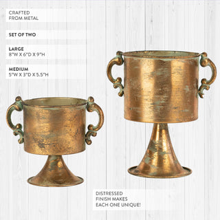 Antique Copper Finish Planter Urns, Set of 2