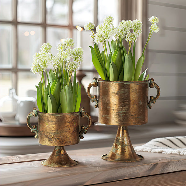 Elevate your interior decor with style and sophistication using our Antique Copper Finish Planter Urns. Make a statement of elegance and charm with these exquisite pieces.